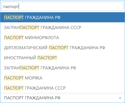 В интерфейсах системы присутствуют поля, в которых возможен выбор предустановленного значения из выпадающего списка.