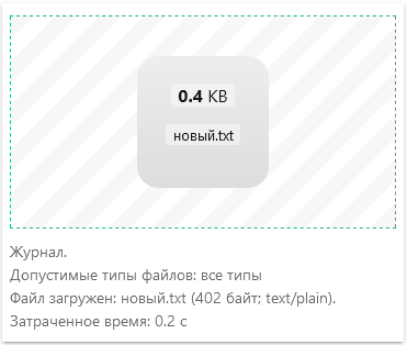 Для загрузки файла необходимо нажать указателем на «Зону загрузки» и штатным средством операционной системы загрузить необходимый файл (в некоторых интерфейсах доступна множественная загрузка).
