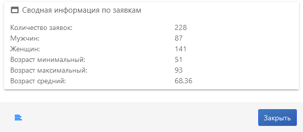 Для вывода сводной информации предметной области по записям списка нажмите на пиктограмму