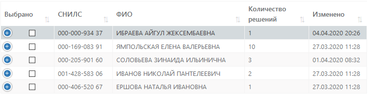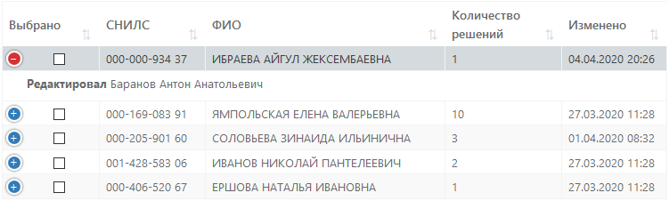 В системе реализована возможность группового выбора записей. Данная функция может быть использована для последующего группового действия с записями или экспорта данных во внешний файл.
