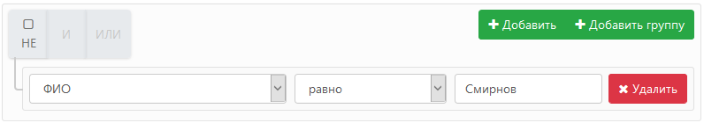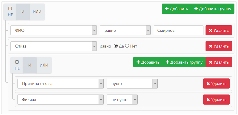 НЕ. Логические элементыИ,ИЛИстановятся доступны при добавлении дополнительных условий фильтрации.