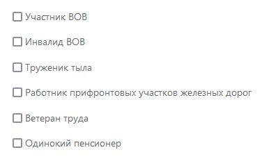 Пример: Одновременно выбраны параметры Труженик тыла, Ветеран труда и Одинокий пенсионер