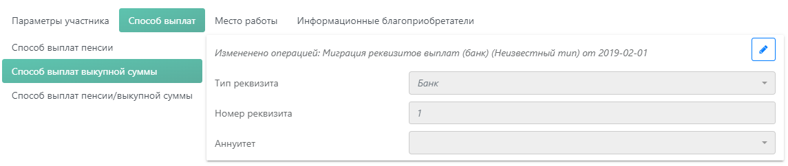 - Реквизиты выплат;