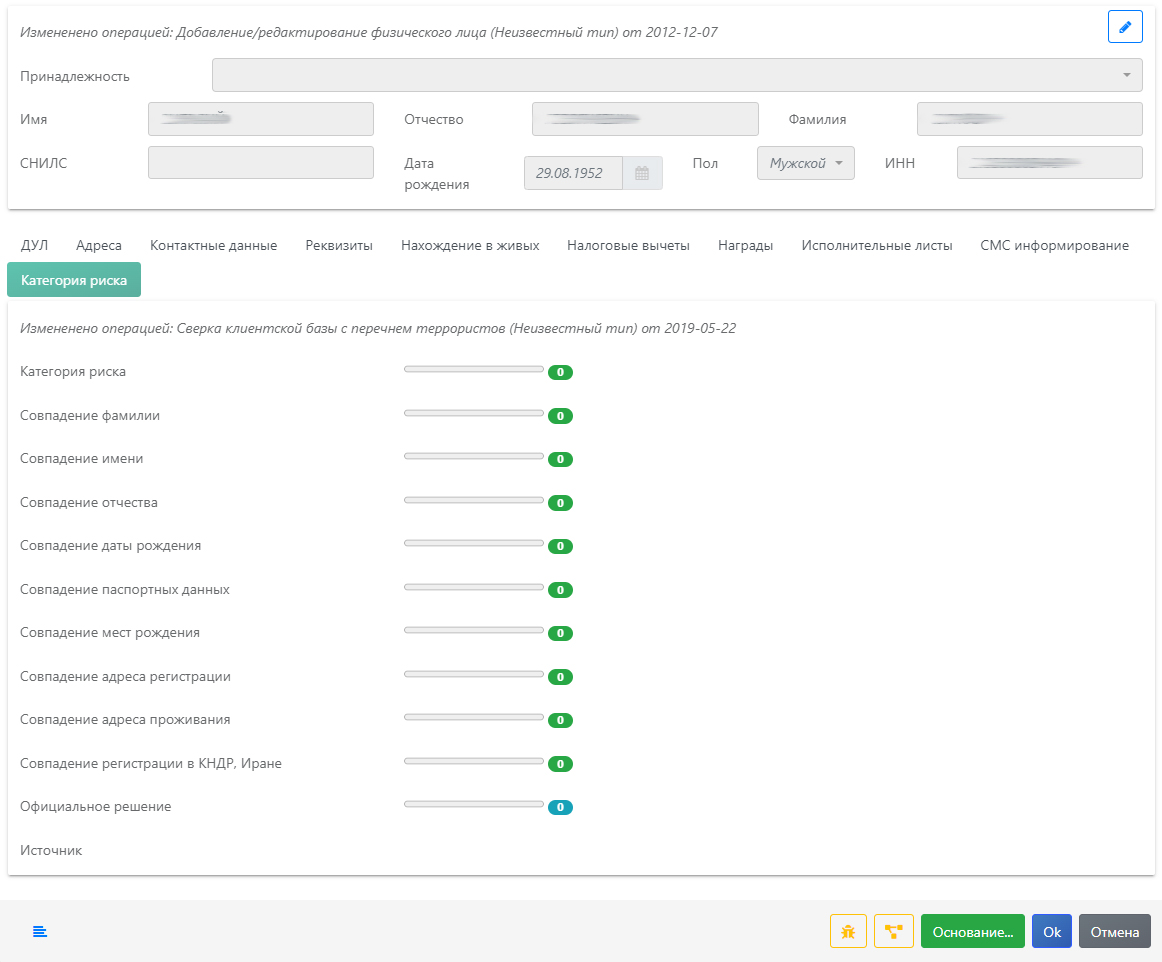 Модальное окно «Данные физического лица»