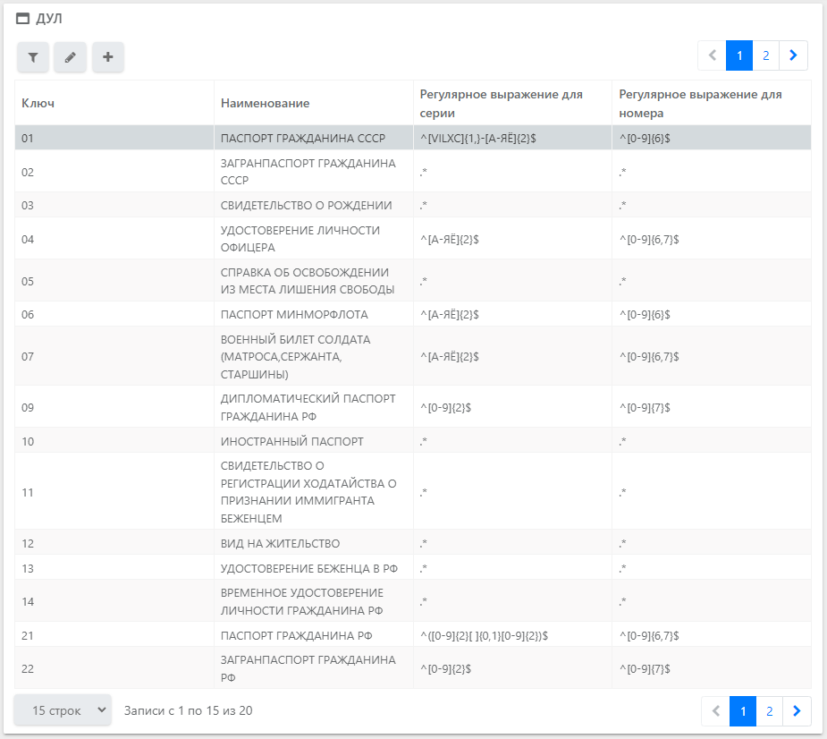 В интерфейсах, отображающих записи в табличном виде, реализована возможность постраничного просмотра информации и задания количества записей, выводимых в интерфейсе одной страницы.