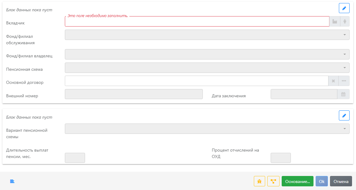 Интерфейс «Пенсионные схемы»