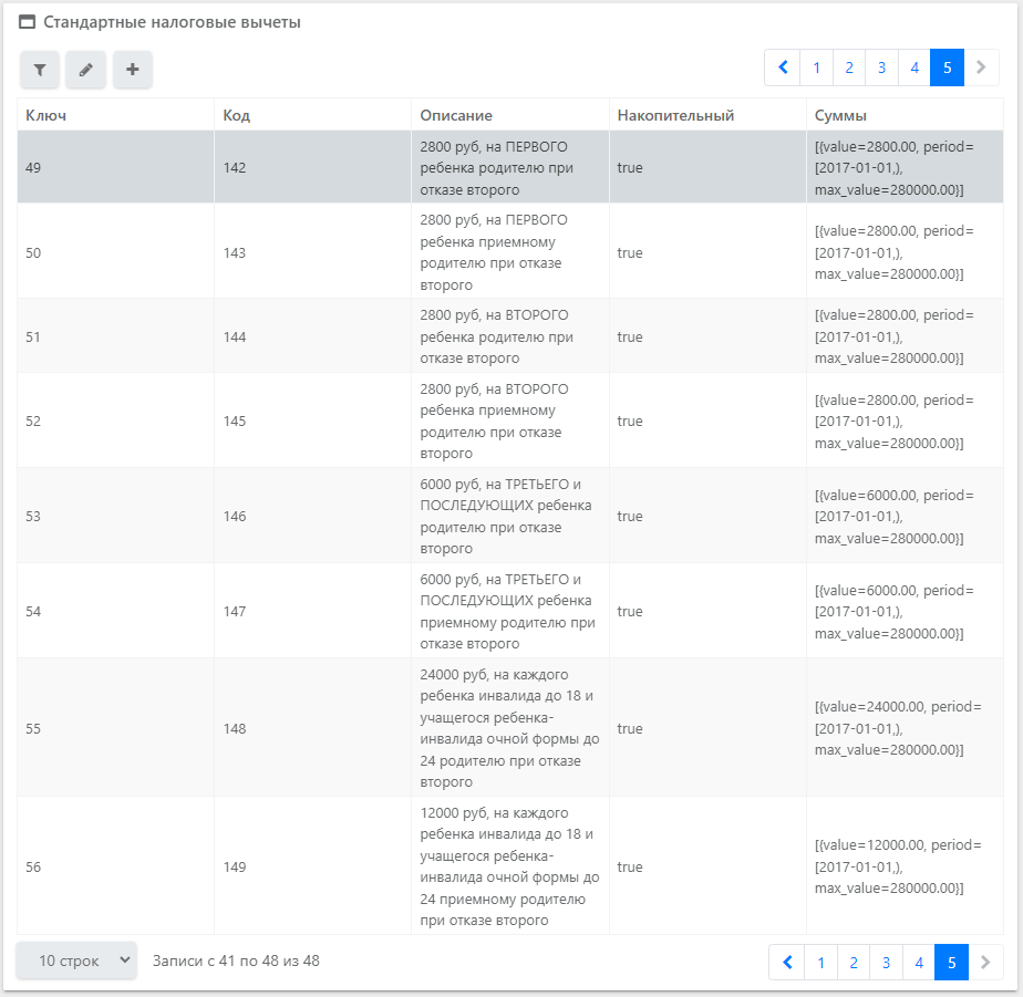 Интерфейс «Стандартные налоговые вычеты»